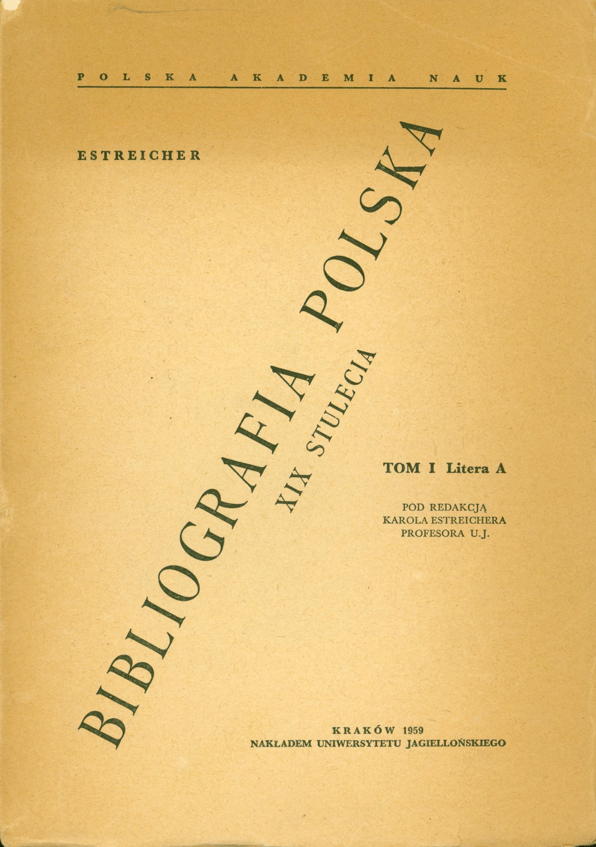 Dod. s. tyt.: Bibliografia polska Karola Estreichera. Cz. 1