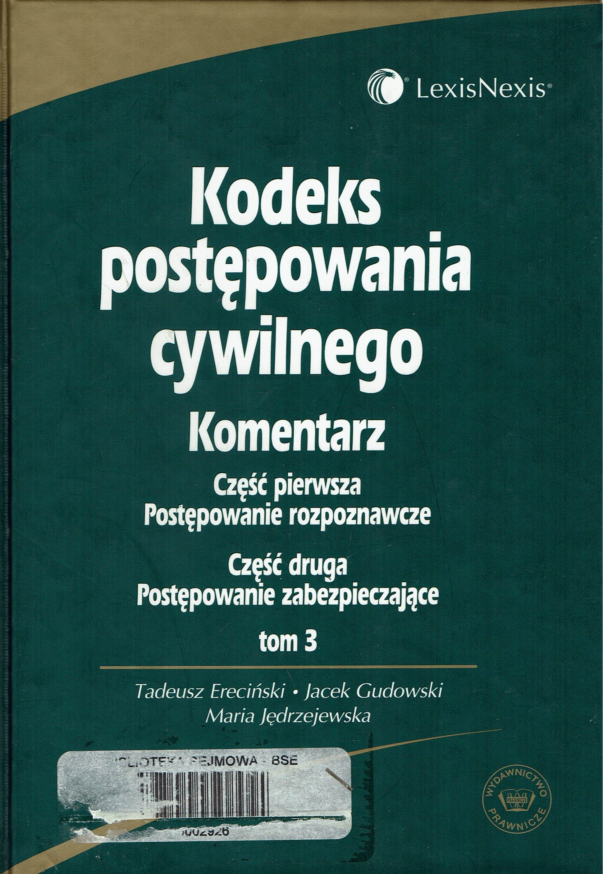 Tyt. grzbietowy: K.P.C. Kodeks postępowania cywilnego : komentarz