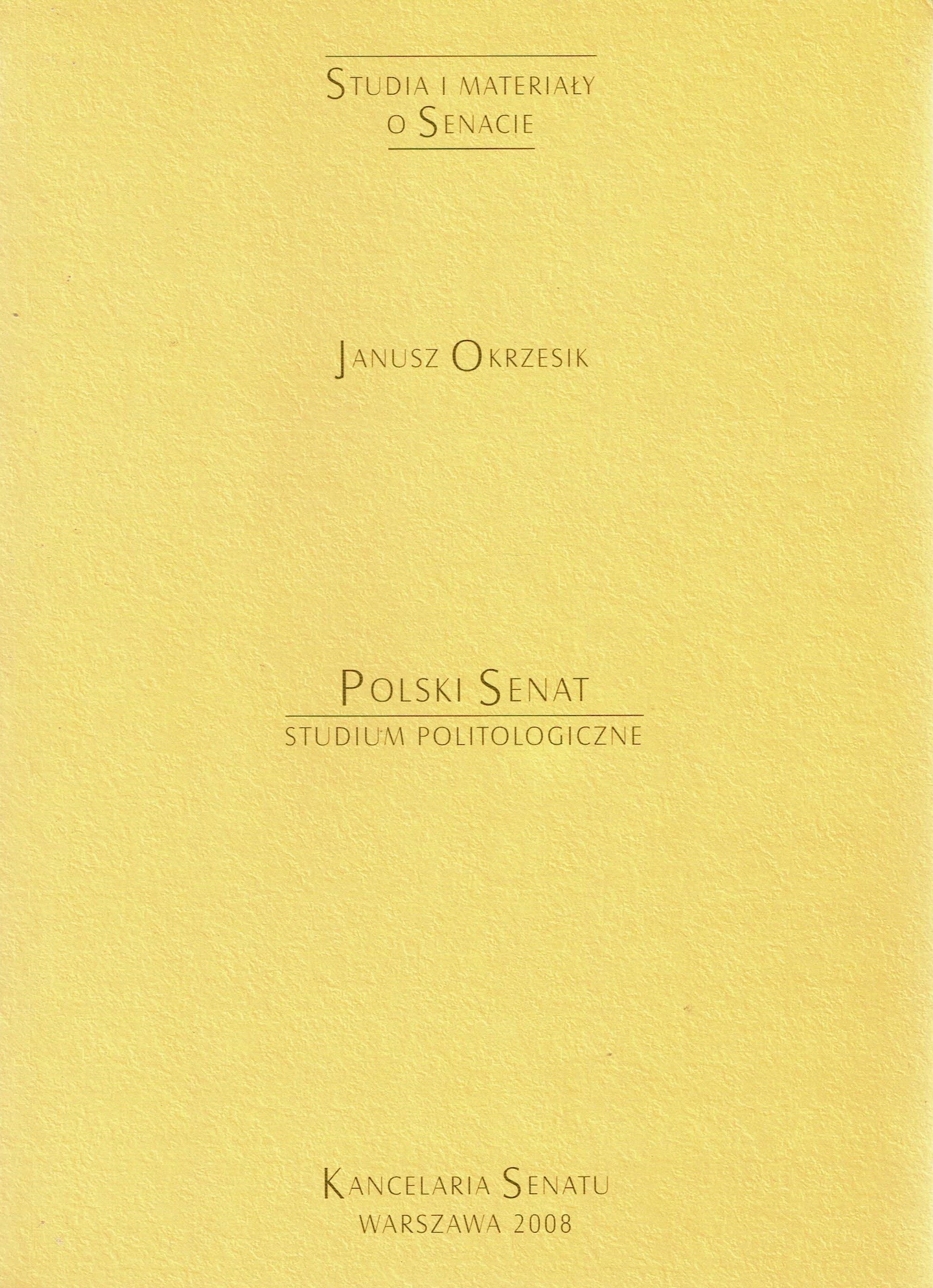 Polski Senat : studium politologiczne / Janusz Okrzesik. - Warszawa : Kancelaria Senatu, 2007. - 200, [1] strona : ilustracje ; 24 cm.