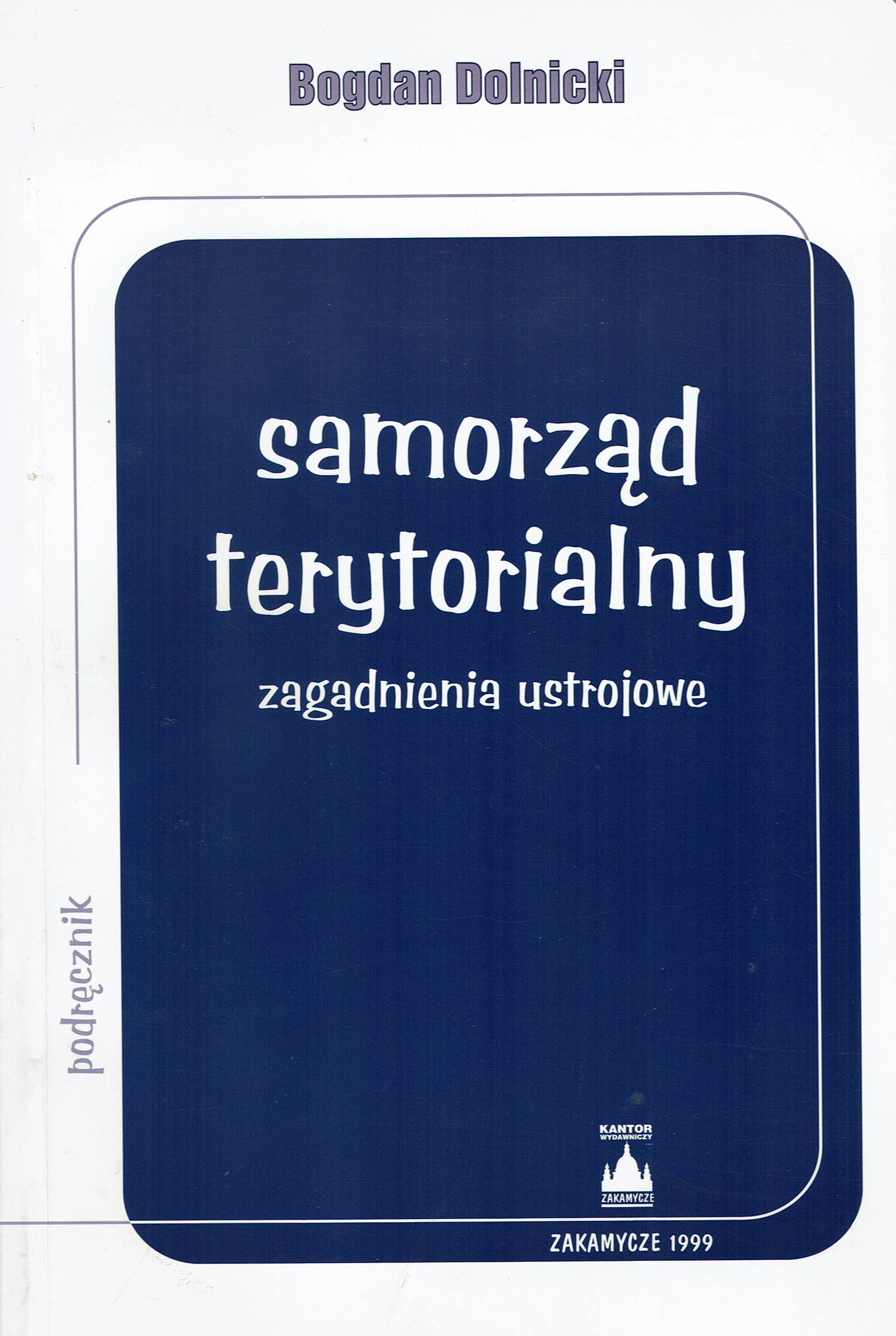 Samorząd terytorialny / Bogdan Dolnicki. - Stan prawny na 15 sierpnia 2001 r. - Kraków : Kantor Wydawniczy "Zakamycze", 2001. - 322 s. ; 24 cm.
